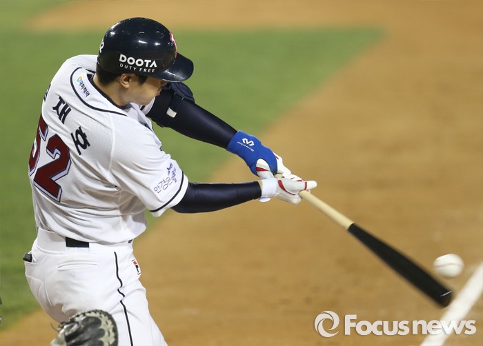 (서울=포커스뉴스) 22일 서울 잠실구장에서 열린 2016 프로야구 한화-두산 경기 5회말 1사 2,3루에서 두산 김재호가 주자를 모두 불러 들이는 좌전안타를 치고 있다.