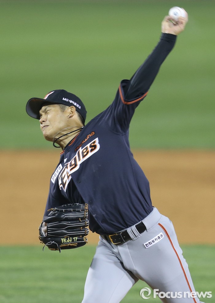 (서울=포커스뉴스) 22일 서울 잠실구장에서 열린 2016 프로야구 한화-두산 경기 6회말 2사 1,3루에서 한화 투수 박정진이 구원 등판해 투구하고 있다.