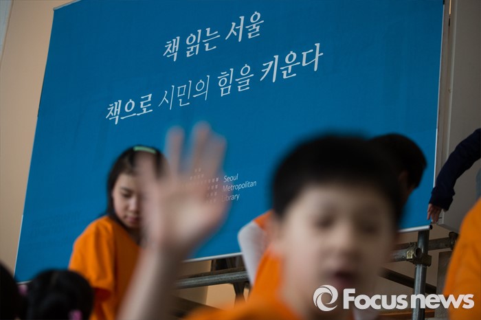 (서울=포커스뉴스) 세계 책의 날을 하루 앞둔 22일 오후 어린이들이 서울 중구 서울도서관을 견학하고 있다.