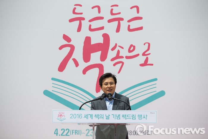 (서울=포커스뉴스)유네스코가 1995년 제정한 ‘세계 책과 저작권의 날’인 23일 오전 서울 중구 청계광장에서 열린 2016 세계 책의 날 기념 책드림 행사 '두근두근 책 속으로'에서 황교안 국무총리가 축사를 하고 있다.