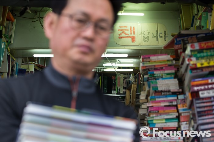 (서울=포커스뉴스) 세계 책의 날인 23일 오전 서울 중구 청계6가 평화시장 인근의 한 헌책방에서 책방 주인이 영업 준비를 하고 있다. 청계 6가 헌책방거리는 1970년대 점포수가 200여 개에 달할 정도로 성황이었지만 현재는 25곳 정도 밖에 남아 있지 않다.