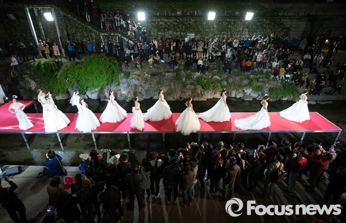 (서울=포커스뉴스) 23일 오후 서울 동대문 패션타운 인근 청계천 수상무대에서 ‘2016 청계천 수상 패션쇼’가 열리고 있다.