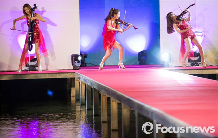 (서울=포커스뉴스) 23일 오후 서울 동대문 패션타운 인근 청계천 수상무대에서 열린 ‘2016 청계천 수상 패션쇼’에서 무대 오프닝 연주를 하고 있다.