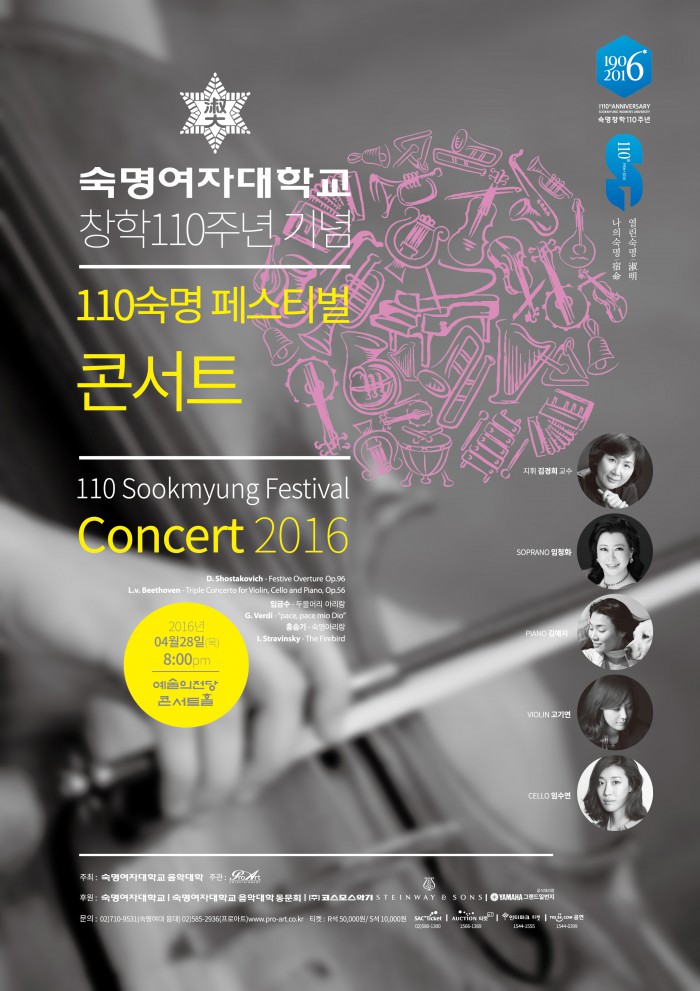 (서울=포커스뉴스) 창학 110주년을 맞은 숙명여자대학교가 오는 28일 오후 8시 서울 서초구 예술의전당 콘서트홀에서 '110 숙명 페스티벌 콘서트'를 개최한다.