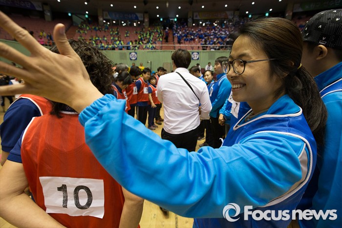 (서울=포커스뉴스) 24일 오전 서울 송파구 잠실실내체육관에서 열린 '2016 서울시민 생활체육대회' 참가자들이 판 뒤집기 게임에 앞서 게임설명을 듣고 있다.