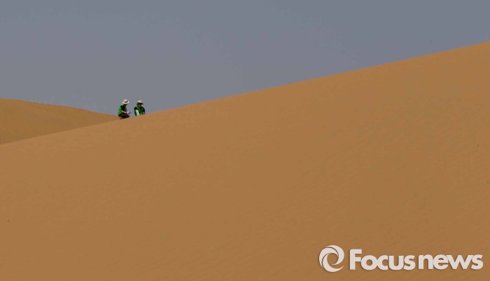 (다라더치/중국=포커스뉴스) 24일 오전 중국 내몽고 다라더치 쿠부치사막에서 한ㆍ중ㆍ일 대학생들로 구성된 2016 미래숲 15기 녹색봉사단원들이 사막트래킹을 하고 있다. 미래숲 녹색봉사단은 이번 봉사활동을 통해 황폐화된 사막에 나무 심기 및 각국 청년들과 우호를 증진을 위한 교류 활동을 전개할 예정이다.