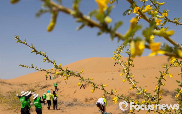 (다라더치/중국=포커스뉴스) 24일 오전 중국 내몽고 다라더치 쿠부치사막에서 한ㆍ중ㆍ일 대학생들로 구성된 2016 미래숲 15기 녹색봉사단원들이 사막트래킹을 하고 있다. 미래숲 녹색봉사단은 이번 봉사활동을 통해 황폐화된 사막에 나무 심기 및 각국 청년들과 우호를 증진을 위한 교류 활동을 전개할 예정이다.