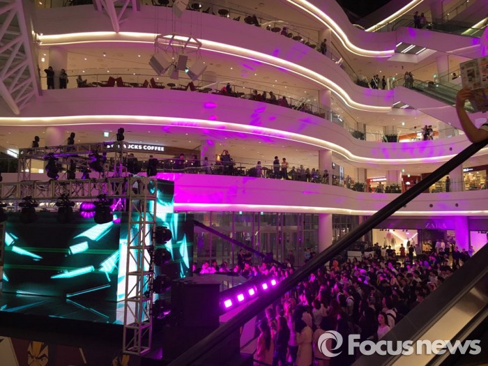 2층과 3층에서도 커피숍이나 음식점 소파에 자리 잡은 100여명의 관객들이 사진을 찍거나 함께 음악을 즐겼다. 이 모든 것이 대낮처럼 밝은 대형복합쇼핑몰 로비에서 술 한 방울 없이 일어난 일이다.