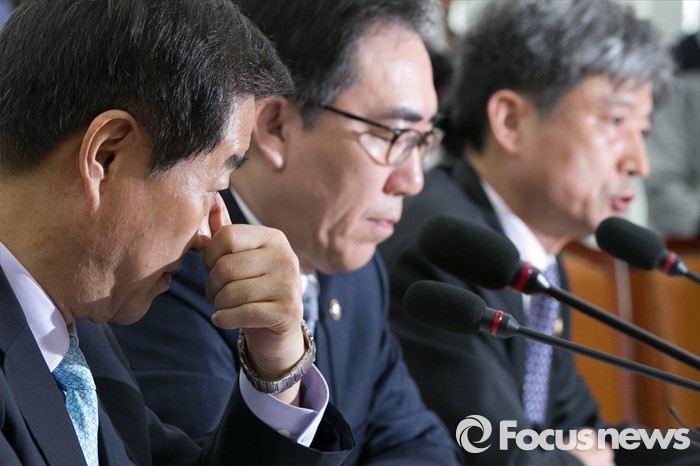(서울=포커스뉴스) 황인무(왼쪽) 국방부 차관이 28일 오전 서울 여의도 국회에서 열린 대북 관련 긴급 안보 대책회의에 참석해, 생각에 잠겨 있다.