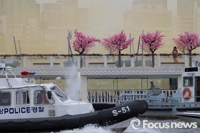 (서울=포커스뉴스) 27일 오전 서울 영등포구 여의도 한강공원 원효대교 일대에서 '수도 서울 민․관․군 합동 대규모 복합재난 가상훈련'이 진행되고 있다.