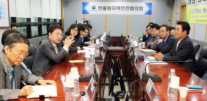 (서울=포커스뉴스) 김용환 원자력안전위원회 위원장이 27일 한울원자력본부 제1발전소 회의실에서 한울원자력안전협의회 위원들과 간담회를 나누고 있다. 김 위원장은 지난 15일 취임해 고리원자력안전협의회를 시작으로 지역주민과의 소통을 강조하며 각 지역 원자력안전협의회 위원들과 소통 행보를 이어갔다. <사진제공=원자력안전위원회>