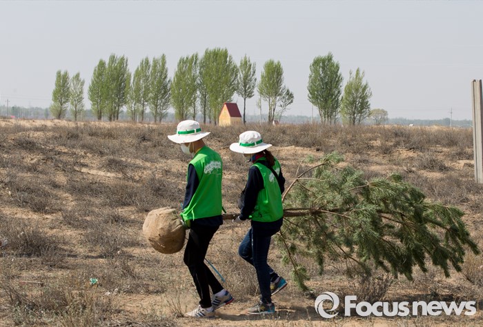 (다라더치/중국=포커스뉴스) 25일 오전 중국 내몽고 다라더치 쿠부치사막에서 2016 미래숲 15기 녹색봉사단원들이 나무 심기 작업을 하고 있다. 미래숲 녹색봉사단은 이번 봉사활동을 통해 황폐화된 사막에 나무 심기 및 각국 청년들과 우호를 증진을 위한 교류 활동을 전개했다.