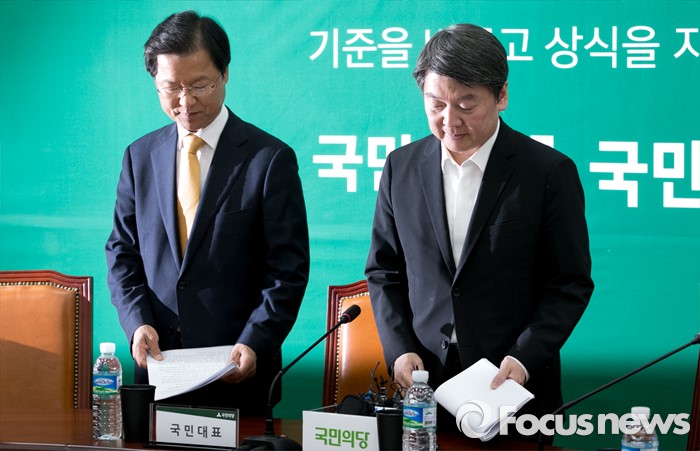 (서울=포커스뉴스) 2일 오전 서울 여의도 국회에서 열린 국민의당 최고위원회의에 안철수(오른쪽) 상임공동대표, 천정배 공동대표가 참석하고 있다.