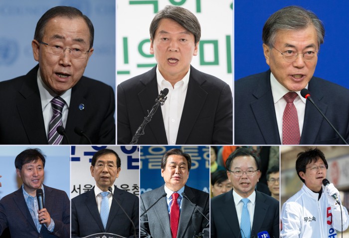 이번 조사는 지난 21∼23일 전국 19세 이상 남녀 1063명을 대상으로 유선 전화면접 및 스마트폰 앱 조사 방식으로 이뤄졌다. 오차범위는 95% 신뢰수준에 ±3.01%p이며 응답률은 14.4%이다. 보다 자세한 내용은 중앙선거여론조사공정심의위원회(www.nesdc.go.kr)를 참조하면 된다.국민일보가 여론조사기관인 지앤컴리서치에 의뢰해 24일 발표한 여론조사에서 여야 통합 대선후보 지지도는 반기문 유엔사무총장이 26.5%로 1위, 안철수 국민의당 상임공동대표(17.9%)와 문재인 더불어민주당 전 대표(16.9%)가 각각 2·3위를 차지했다. 이어 오세훈 전 서울시장(6.4%) 박원순 서울시장(6.0%) 김무성 전 새누리당 대표(4.1%) 김부겸 더불어민주당 당선인(3.8%) 유승민 무소속 의원(2.8%) 등이 그 뒤를 이었다.그래픽=포커스뉴스 김진우 기자