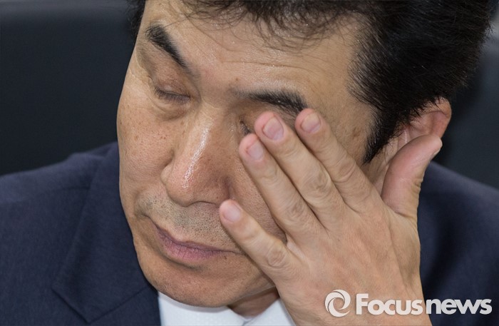 (세종=포커스뉴스) 정세화 한진해운신항만 사장이 25일 오후 세종시 정부세종청사 해양수산부 중회의실에서 열린 해운시장 및 해운동맹 재편 관련 대책회의에 참석해 잠시 얼굴을 만지며 생각에 잠긴 모습을 보이고 있다.