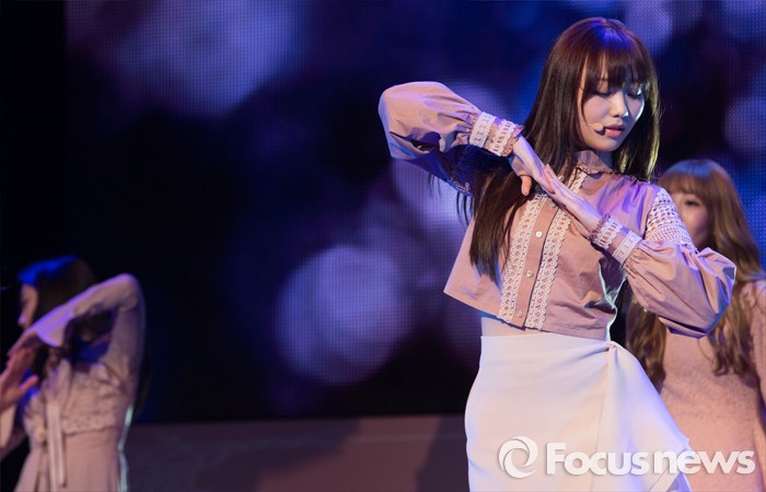 (서울=포커스뉴스) 25일 오후 서울 용산구 블루스퀘어 삼성홀에서 열린 걸그룹 러블리즈의 미니앨범 'A NEW TRILOGY' 발표 쇼케이스에 참석한 멤버들이 신곡 'Destiny' 의 무대를 선보이고 있다.