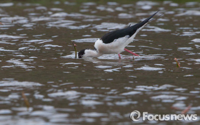 (시흥=포커스뉴스) 장다리물떼새가 25일 오전 경기도 시흥시 관곡지에서 작은 물고기를 잡아먹고 있다. 장다리물떼새는 일부가 한반도에서 번식한다