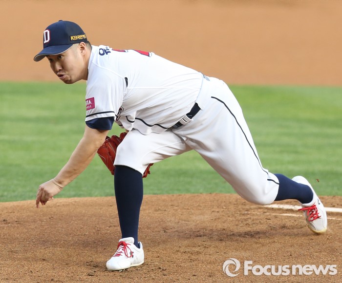 (서울=포커스뉴스) 28일 서울 잠실구장에서 열린 2016 프로야구 SK-두산 경기에서 1회초 두산 선발투수 유희관이 투구하고 있다.