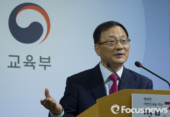 (세종=포커스뉴스) 정명채 한국대학교육협의회 입학지원실장이 27일 오전 세종시 정부세종청사 교육부 공용브리핑실에서 2018학년도 대입 전형 시행 계획을 발표하고 있다.