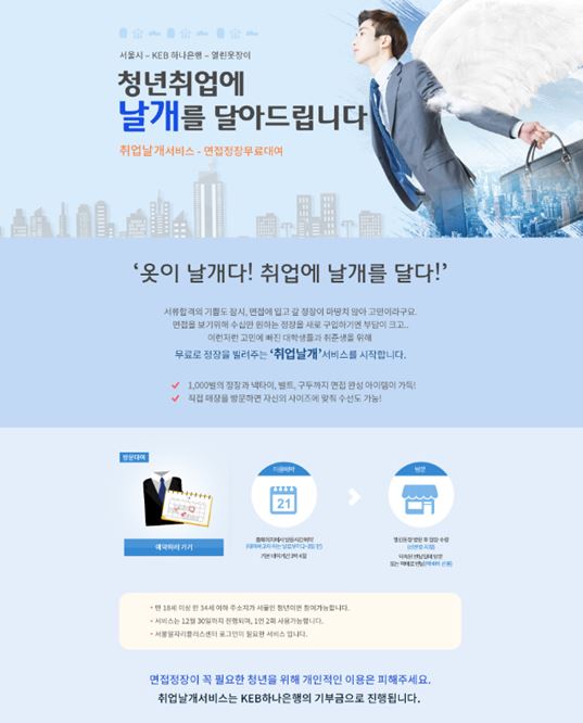 이번 '취업날개' 서비스는 KEB하나은행이 (사)열린옷장에 사회공헌기금을 전달해 진행하게 됐다.