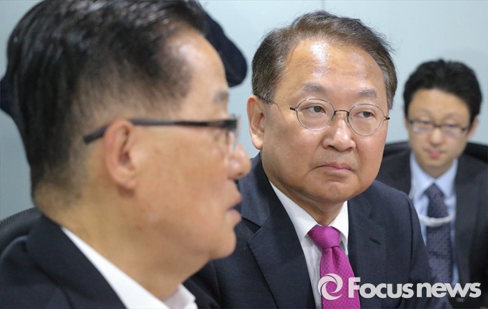 (서울=포커스뉴스) 박지원(왼쪽) 국민의당 원내대표가 29일 오전 서울 여의도 국회 의원회관에서 경제활성화법안 등 처리 요청을 위해 방문한 유일호 경제부총리 겸 기획재정부 장관과 면담을 하고 있다.