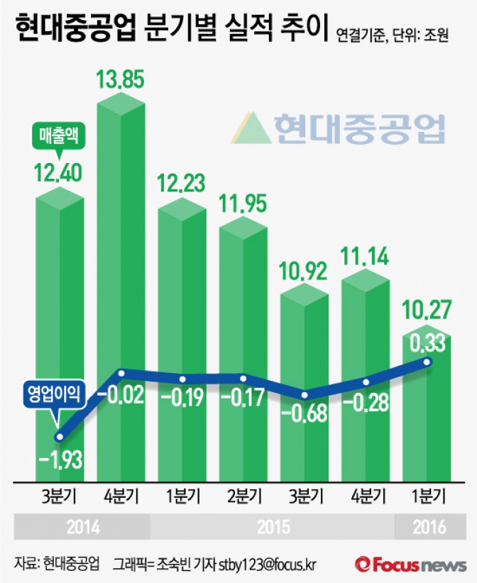 | △ [그래픽] 현대중공업 분기별 실적 추이 |
