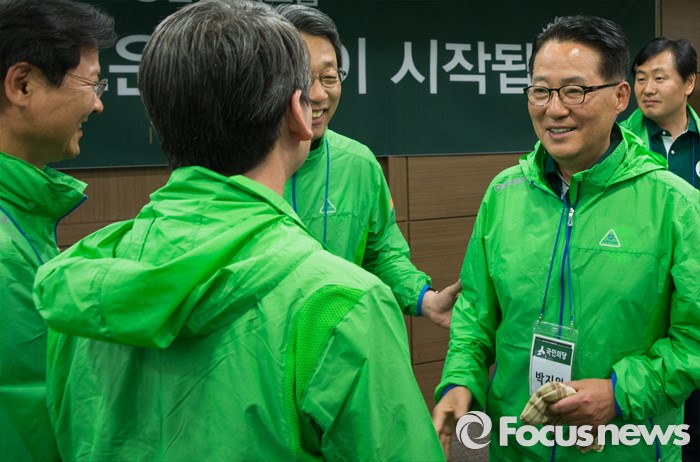 (서울=포커스뉴스) 안철수 국민의당 상임공동대표와 천정배 공동대표가 27일 오전 경기도 양평 한화리조트에서 열린 20대 총선 당선자 워크숍에서 박지원 신임 국민의당 원내대표와 김성식 신임 정책위의장과 대화를 나누고 있다.