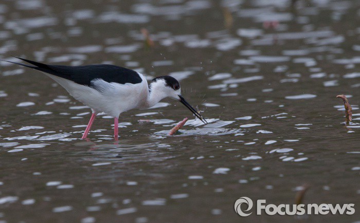 (시흥=포커스뉴스) 장다리물떼새가 25일 오전 경기도 시흥시 관곡지에서 작은 물고기를 잡아먹고 있다. 장다리물떼새는 일부가 한반도에서 번식한다