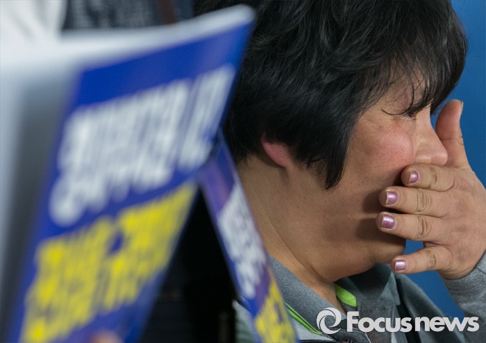 (서울=포커스뉴스) 27일 오전 서울 여의도 국회 정론관에서 진선미 더불어민주당 의원과 형제복지원 사건 피해생존자, 실종자, 유가족모임 등 관련단체 주최로 열린 형제복지원 특별법 제정 촉구 기자회견에 참석한 피해 생존자 박순이 씨가 슬픔에 잠겨 있다.