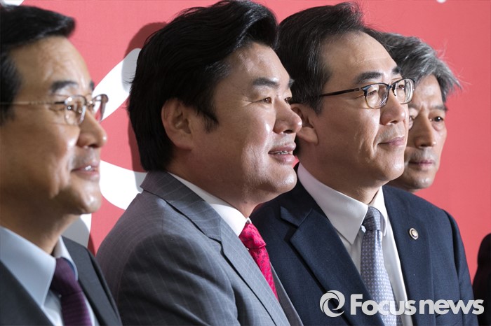 (서울=포커스뉴스) 28일 오전 서울 여의도 국회에서 대북 관련 긴급 안보 대책회의 참석자들이 기념사진을 찍고 있다. 왼쪽부터 김정훈 새누리당 정책위의장, 원유철 대표최고위원 권한대행, 조태열 외교부 2차관, 황부기 통일부 차관.