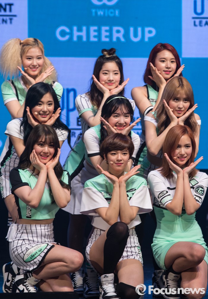 (서울=포커스뉴스) 25일 오후 서울 광진구 예스24 라이브홀에서 열린 걸그룹 트와이스의 미니앨범 'PAGE TWO' 발표 쇼케이스에 참석한 멤버들이 포토타임을 갖고 있다.