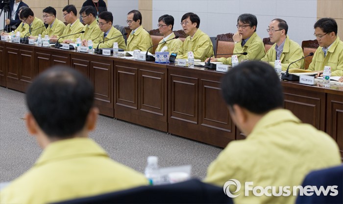 (세종=포커스뉴스) 김경환(오른쪽 네번째) 국토교통부 1차관이 2일 오전 세종시 정부세종청사 국토부 대회실에서 열린 철도·항공기 등 안전한국훈련 준비상황 보고회에서 회의를 주재하고 있다.
