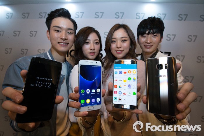 또 "2분기에는 휴대폰, 태블릿 판매량 모두 소폭 감소할 것으로 예상한다"면서도 "갤럭시S7·엣지와 갤럭시 A·J시리즈 등의 판매량을 늘리고 프리미엄 스마트폰 뿐만 아니라 중저가 모델의 수익성을 개선할 것"이라고 말했다.지난 10일 오전 서울 중구 신라호텔에서 삼성전자의 스마트폰 '갤럭시 S7 엣지와 갤럭시 S7'을 모델들이 선보이고 있다. 이번 제품은 듀얼 픽셀과 F1.7 조리개 탑재, 방수·방진과 대용량 배터리가 탑재되어 있다. 2016.03.10 허란 기자