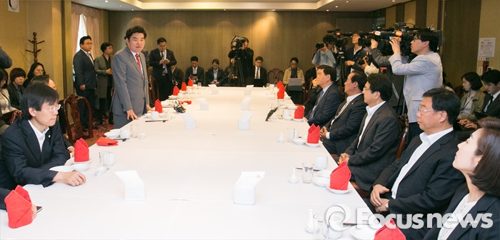 (서울=포커스뉴스) 원유철(왼쪽 두번째) 새누리당 원내대표가 25일 오후 서울 여의도의 한 중식당에서 열린 중진의원 오찬 간담회에 참석해, 발언하고 있다.