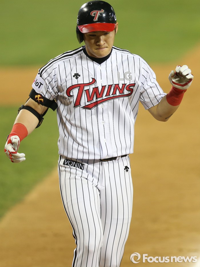 (서울=포커스뉴스) 29일 서울 잠실구장에서 열린 2016 프로야구 kt-LG 경기 5회말 LG 선두타자 오지환이 동점 우월 솔로 홈런을 치고 홈인하고 있다.