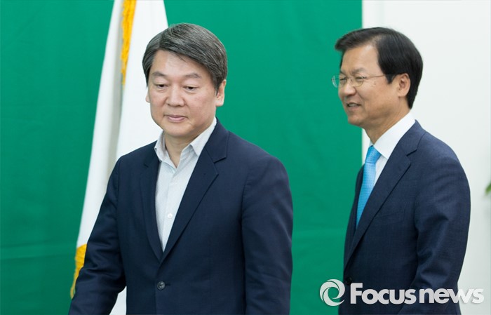 (서울=포커스뉴스) 안철수(왼쪽) 국민의당 상임공동대표와 천정배 공동대표가 29일 오전 서울 여의도 국회에서 최고위원회의에 참석하고 있다.