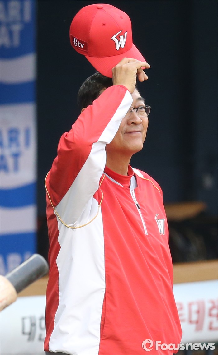 (서울=포커스뉴스) 26일 서울 잠실구장에서 열린 2016 프로야구 SK-두산 경기에서 SK 김용희 감독이 선수들의 훈련을 지켜 보고 있다.