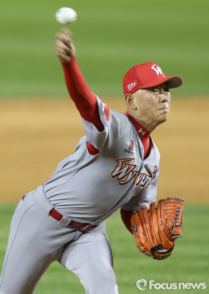 (서울=포커스뉴스) 27일 서울 잠실구장에서 열린 2016 프로야구 SK-두산 경기에서 SK 투수 박정배가 8회 2사 1,3루에서 마운드에 올라 투구하고 있다.