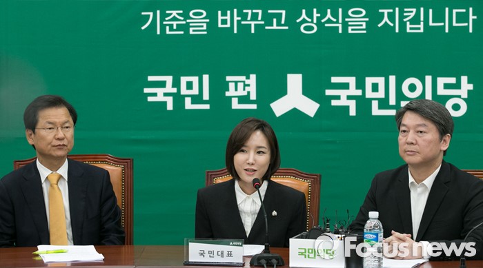(서울=포커스뉴스) 2일 오전 서울 여의도 국회에서 열린 국민의당 최고위원회의에 국민대표 직함으로 참석한 故 가수 신해철의 아내 윤원희 씨가 '의료사고 피해구제 및 의료분쟁 조정 등에 관한 법률 일부개정법률안(일명 신해철법)' 처리를 호소하고 있다. 왼쪽부터 천정배 공동대표, 윤 씨, 안철수 상임공동대표.