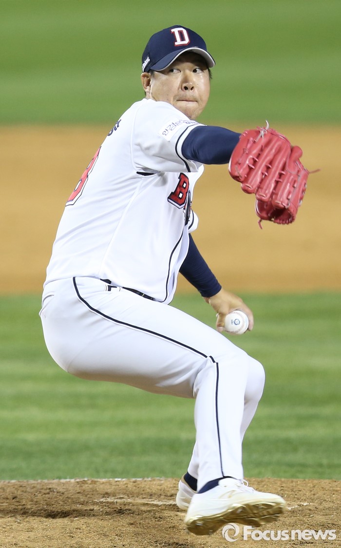 (서울=포커스뉴스) 26일 서울 잠실구장에서 열린 2016 프로야구 SK-두산 경기 8회초 무사 1루에서 두산 마무리 투수 이현승이 마운드에 올라 투구하고 있다.