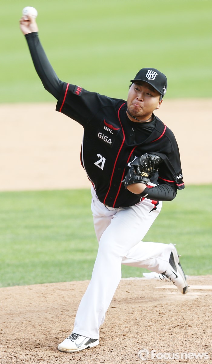 (서울=포커스뉴스) 1일 서울 잠실구장에서 열린 2016 프로야구 kt-LG 경기에서 kt 투수 이상화가 8회말 투구하고 있다.