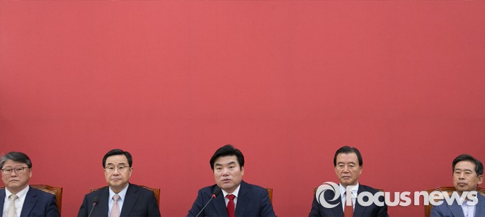(서울=포커스뉴스) 29일 오전 서울 여의도 국회에서 새누리당 원내대책회의가 열리고 있다. 왼쪽부터 조원진 원내수석부대표, 김정훈 정책위의장, 원유철 대표최고위원 권한대행, 홍문표 제1사무부총장, 안효대 정책위부의장.