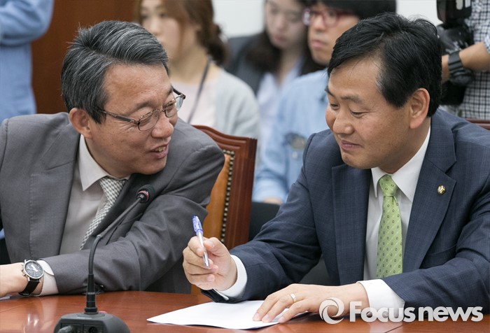 (서울=포커스뉴스) 2일 오전 서울 여의도 국회에서 열린 국민의당 최고위원회의에 참석한 김성식(왼쪽) 정책위의장과 김관영 원내수석부대표가 대화하고 있다.