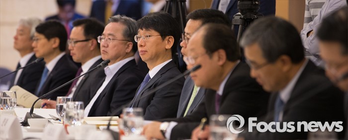 (서울=포커스뉴스) 28일 오전 서울 중구 한국프레스센터에서 열린 '30대 그룹 CEO 간담회'에서 참석자들이 이기권 고용노동부 장관의 모두발언을 듣고 있다.