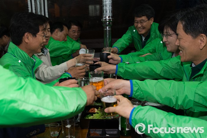 (양평=포커스뉴스) 천정배(왼쪽) 국민의당 공동대표를 비롯한 20대 총선 당선인들이 26일 오후 경기도 양평 한화리조트에서 열린 국민의당 20대 총선 당선자 워크숍에 참석, 저녁식사 중 건배를 하고 있다.