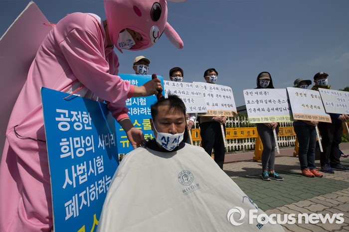 국회앞, 사법시험 준비 고시생 삭발식