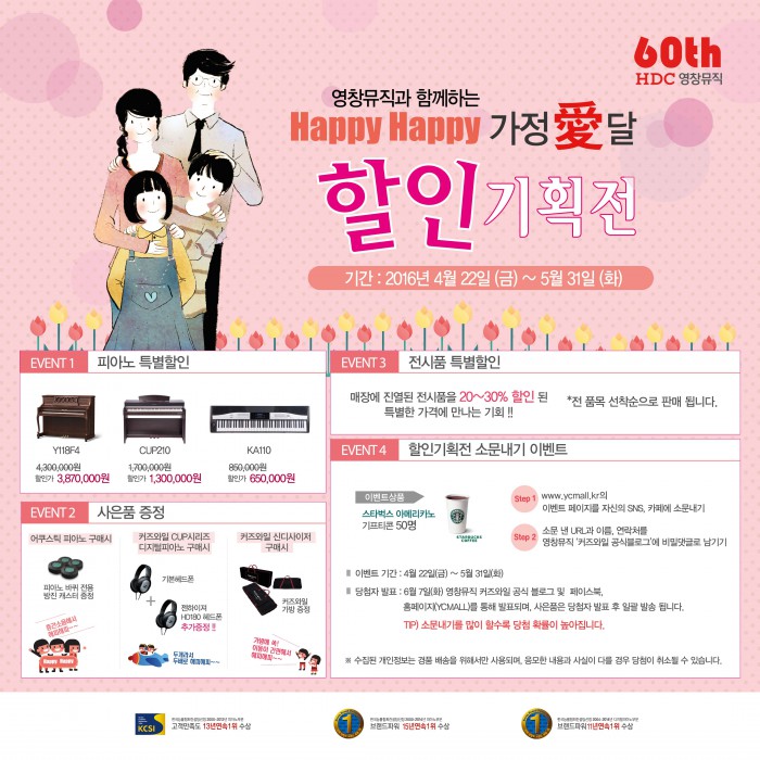 (서울=포커스뉴스) 영창뮤직은 5월 '가정을 달'을 맞아 'Happy(해피) 가정愛달' 이벤트를 실시한다고 28일 밝혔다.