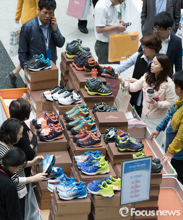 (대전=포커스뉴스) 28일 오전 정부대전청사 중앙홀에 마련된 개성공단 우수상품 특별판매전에서 공무원들이 제품을 살피고 있다. 개성공단 우수상품 특별판매전은 개성공단 입주기업 피해를 최소화 하기 위해 중소기업청이 주최했다.