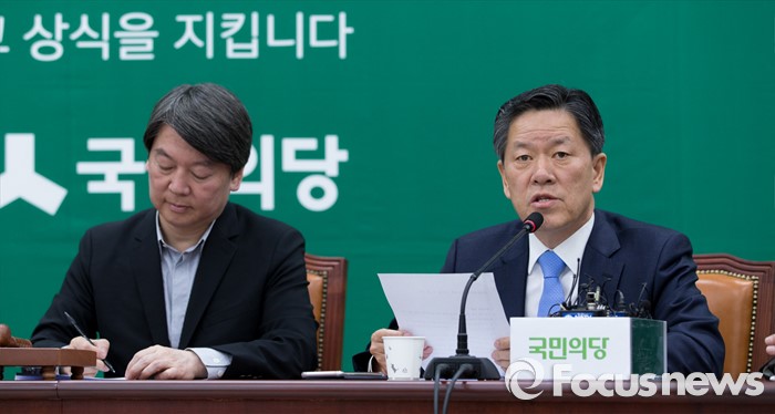 주 원내대표는 그러면서 "여당하고의 연정을 염두에 두고 얘기한 것은 아니"라고 선을 그었다.(주승용(오른쪽) 국민의당 원내대표가 25일 오전 서울 여의도 국회에서 최고위원회의에 참석해 모두발언을 하고 있다. 2016.04.25 김인철 기자