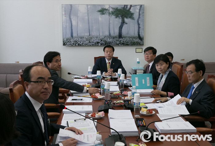 (서울=포커스뉴스) 26일 오전 서울 여의도 국회에서 열린 법제사법위원회 법안심사1소위원회에 참석한 이한성 소위원장 등 의원들이 비공개 회의를 위해 취재진 퇴장을 기다리고 있다.